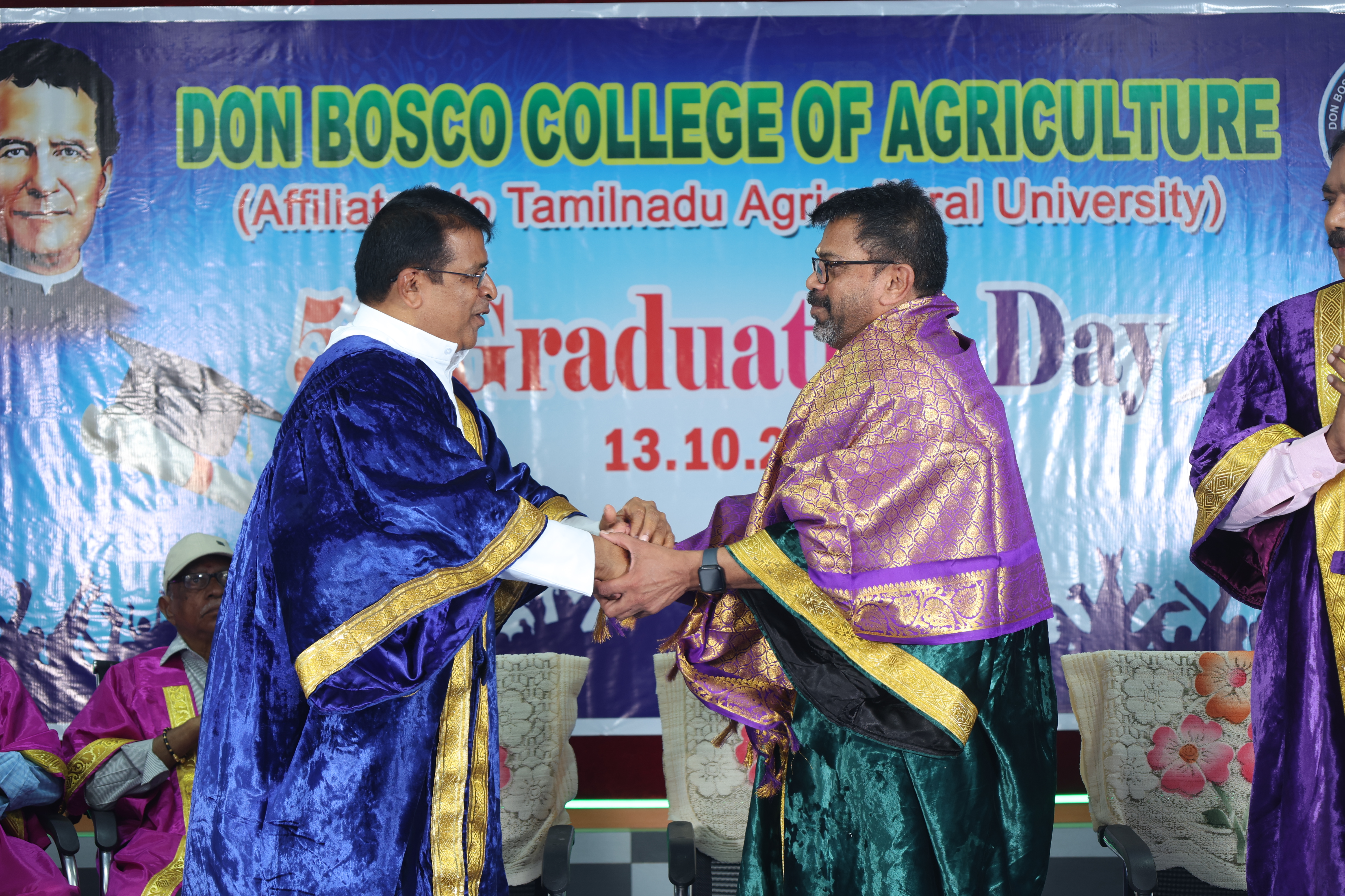 Don Bosco College of Agriculture proudly celebrated its 5th Graduation Day with great joy and pride. The event marked a significant milestone in the academic journey of our graduates as they received their degrees in the presence of distinguished guests, faculty members, parents, and friends. The ceremony was filled with inspiring speeches, memorable moments, and heartfelt emotions as students stepped into a new chapter of their lives.